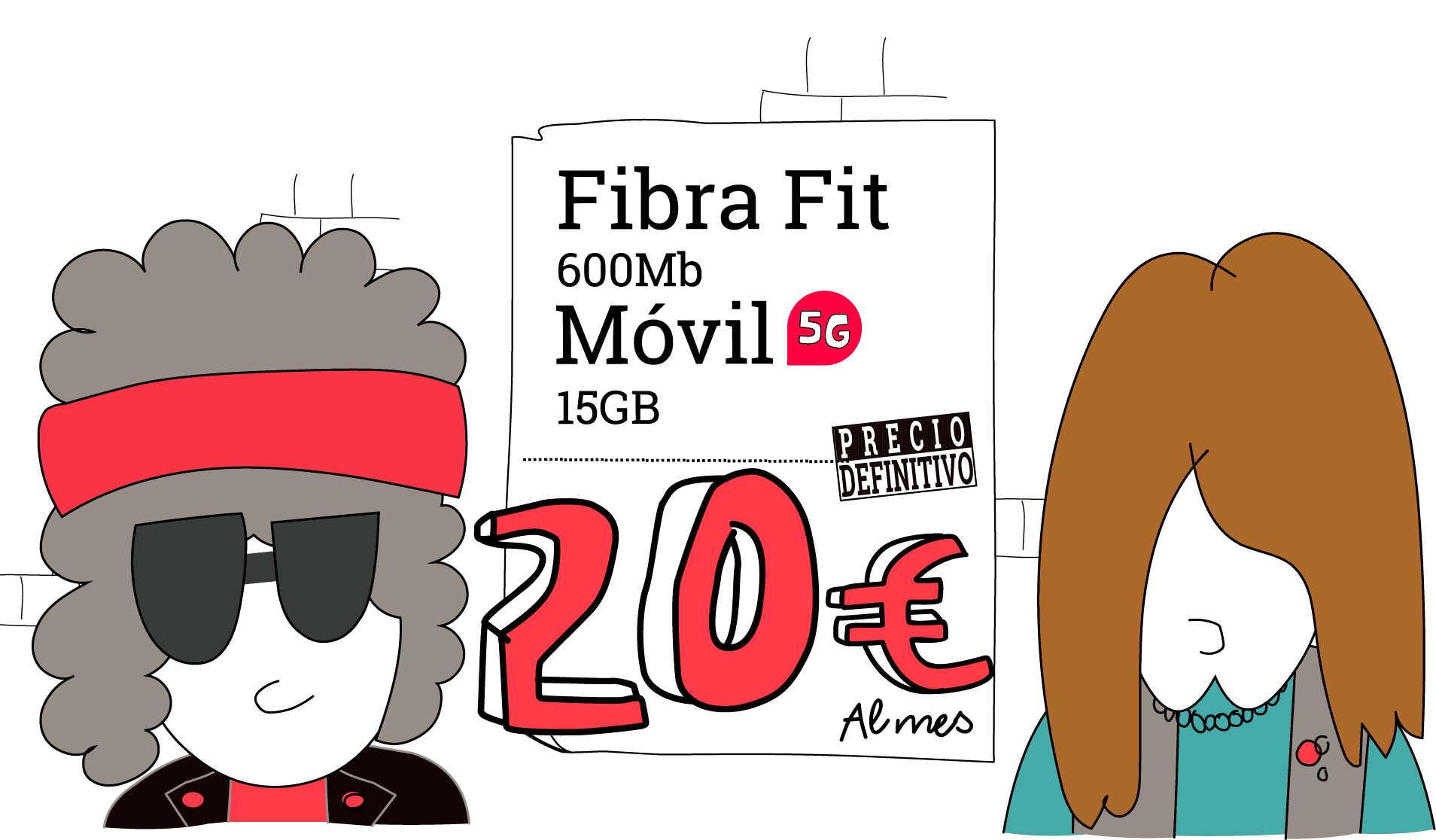 Fibra Fit 600 Mb + Móvil Llamadas ilimitadas + 15 Gb. 20€/mes